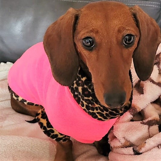 Leopard Print Trim Dachshund Fleece Jumper